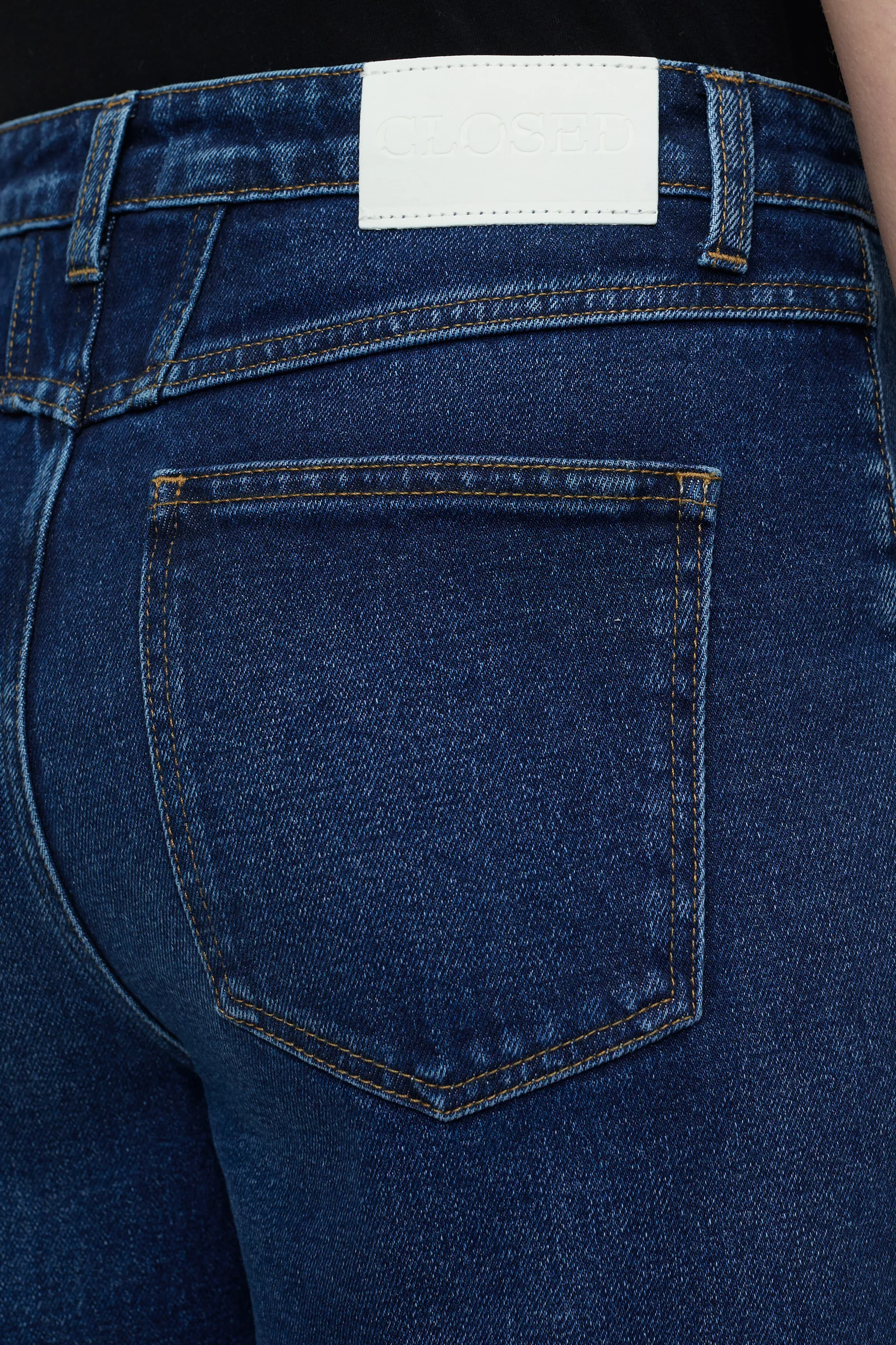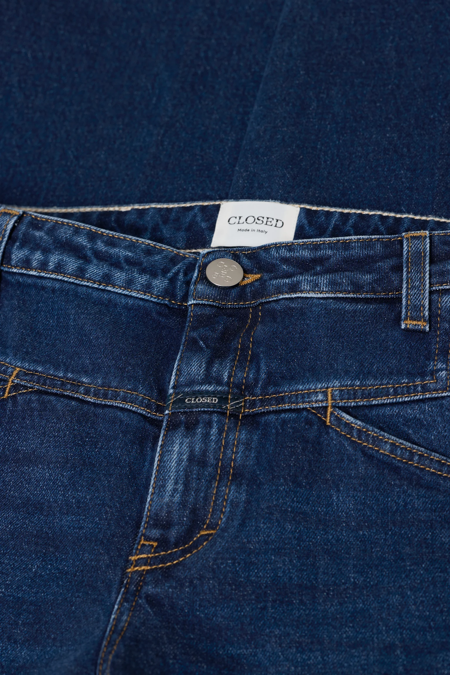 - Looks like: klassische, indigoblaue Waschung, Tobacco-Stitching, X-Pockets