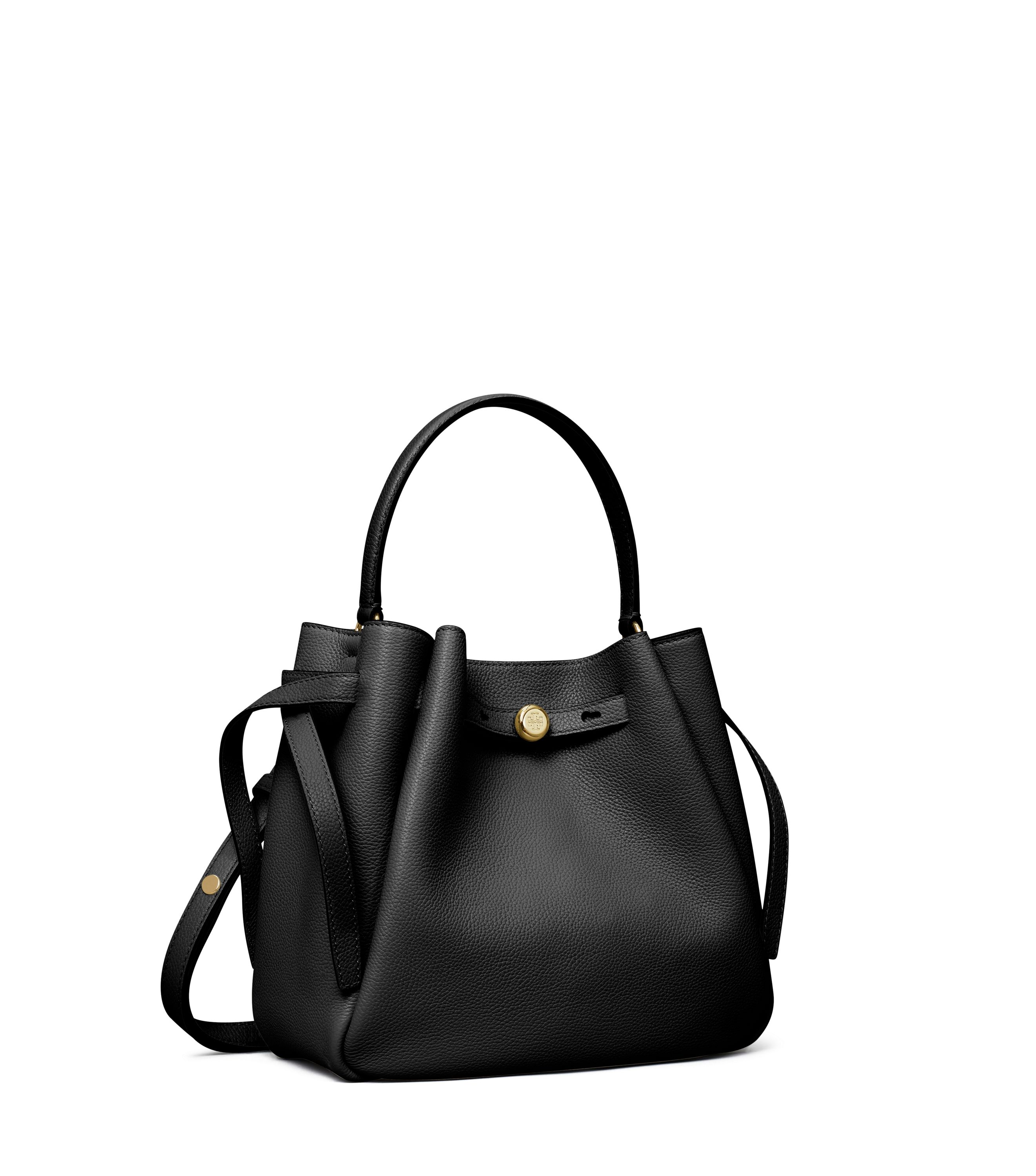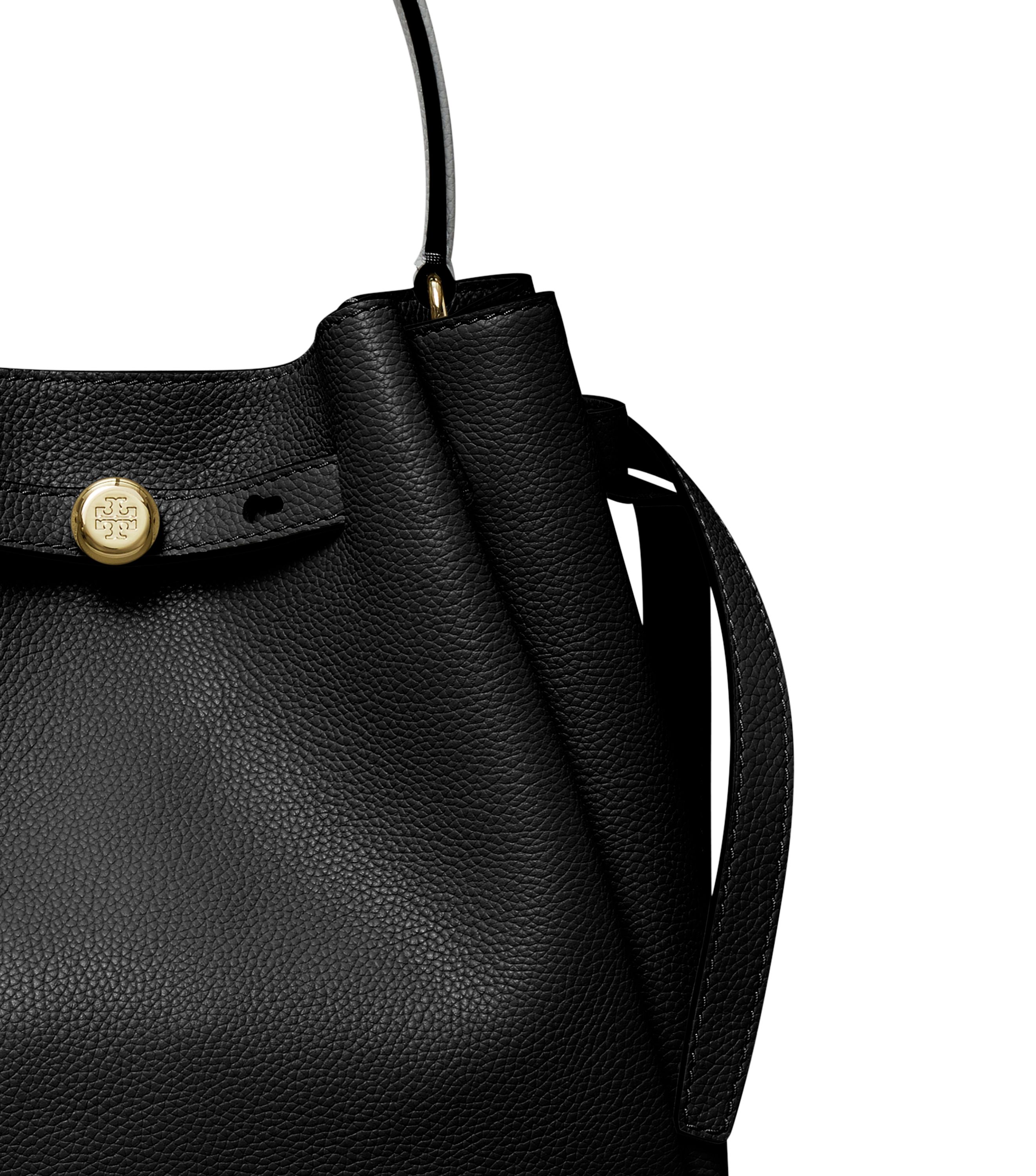 Die ultimative Citytasche. Unsere Romy Bucket Bag aus hochwertigem Strukturleder beeindruckt durch ihren schmalen Zugriemen, der für tolle Konturen sorgt. Minimalistische Metallelemente, ein abnehmbarer Umhängeriemen und ein Reißverschlussfach verleihen diesem leichten Accessoire jede Menge Funktionalität.