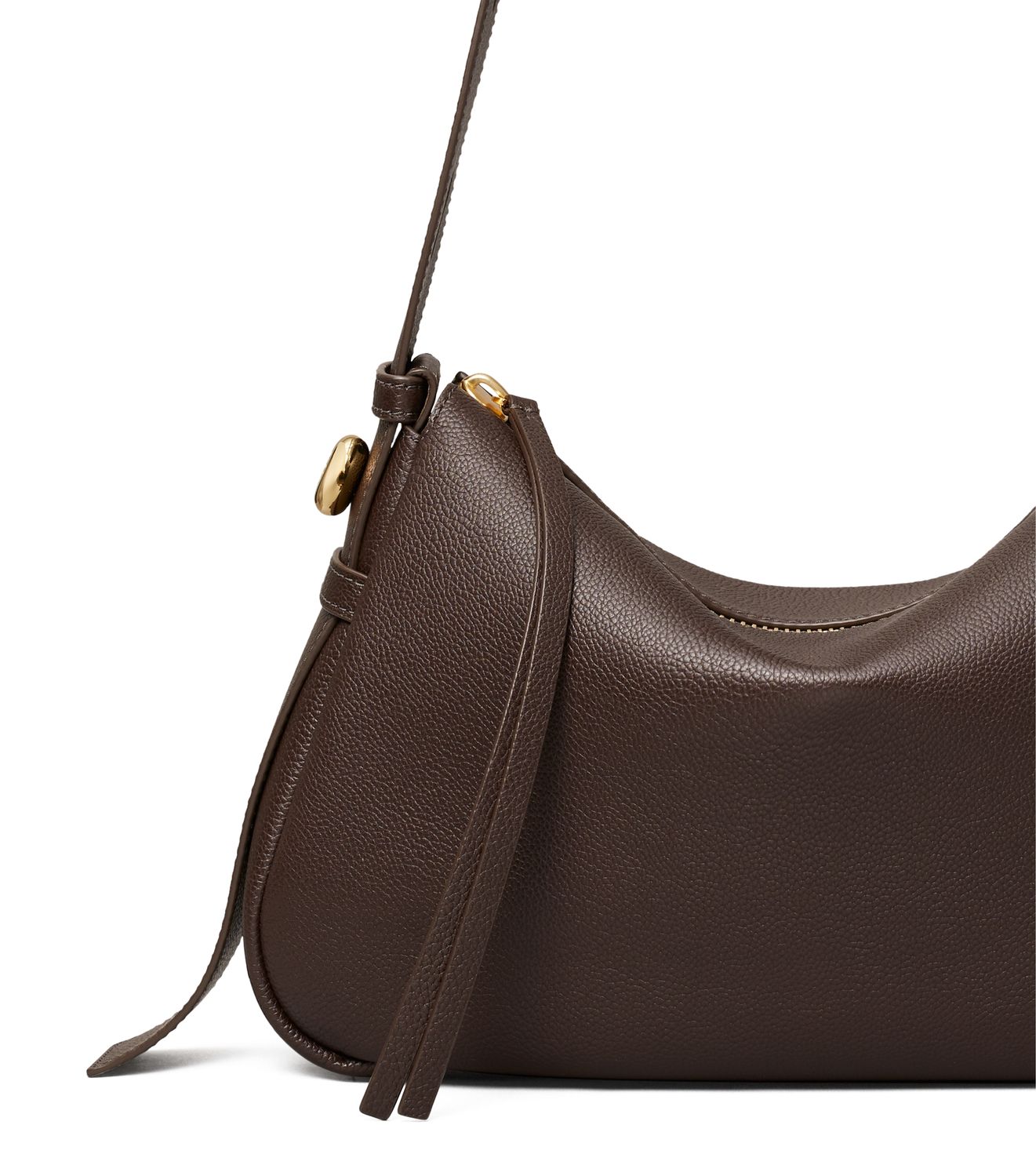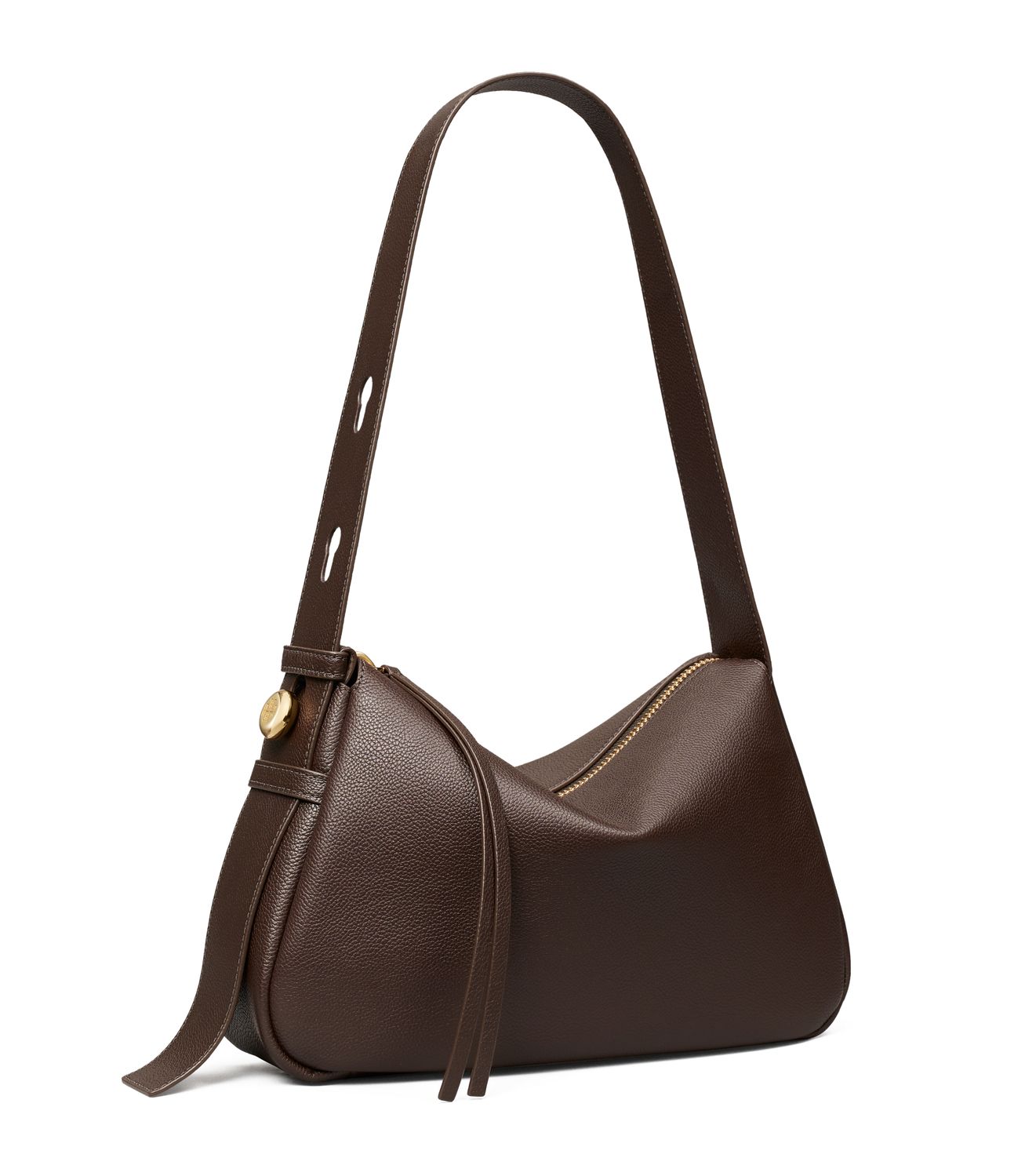Die ultimative Handtasche für jeden Tag. Die skulpturale, aber dennoch weiche und praktische Romy Schultertasche aus edlem Narbenleder ist leicht und bietet dank geräumigem Innenraum und tiefem Reissverschlussfach Platz für Handy, Geldbörse, Sonnenbrille, Tablet und Schlüssel. Der breite Schultergurt lässt sich mit unserem neuen Knopflogo verstellen.