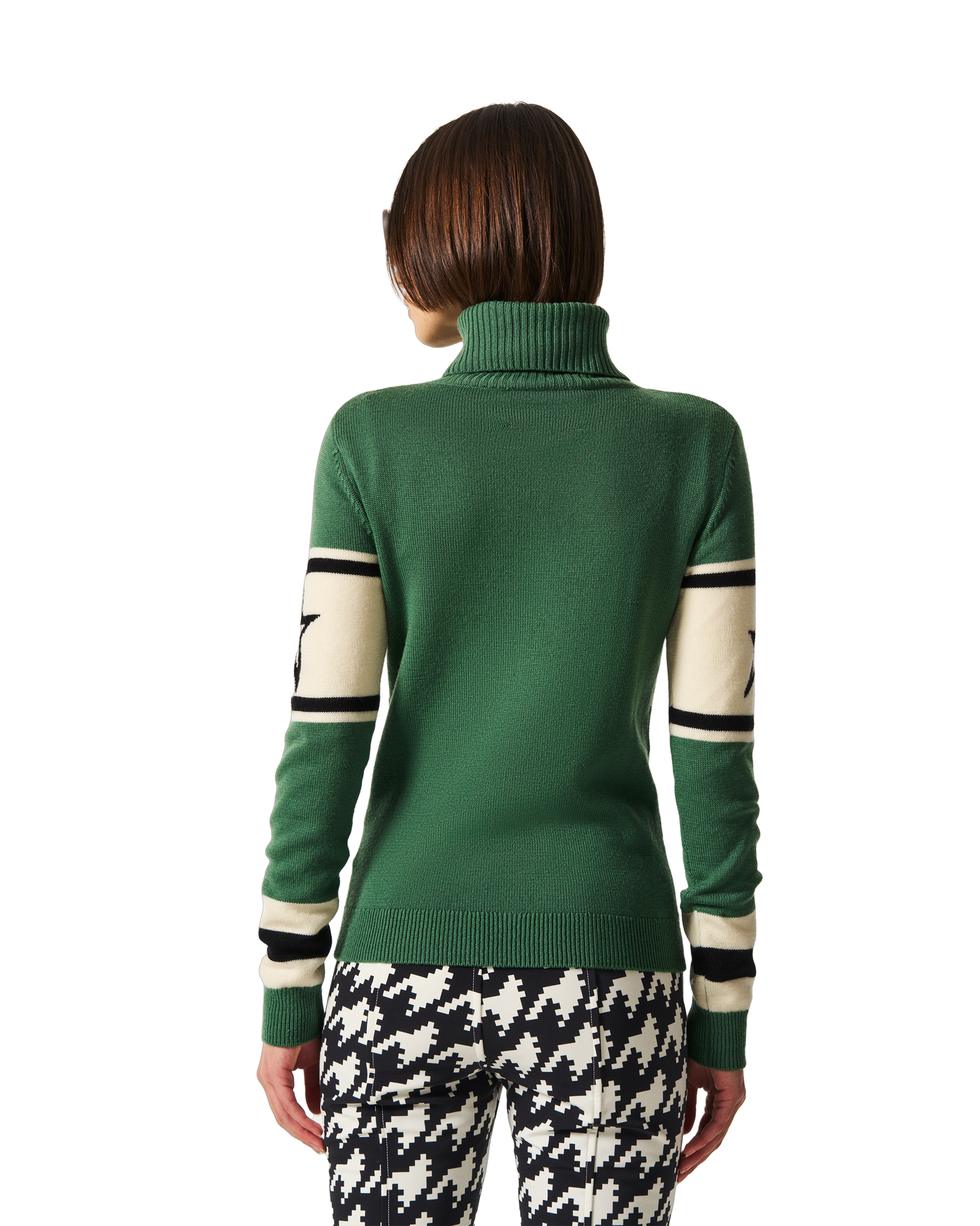 Der Schild Pullover, eine Ikone von Perfect Moment, ist unser meistverkaufter Strickpullover – gefertigt aus weicher, temperaturregulierender Merinowolle für zuverlässige Wärme auf und abseits der Piste. Mit seiner taillierten Silhouette und dem markanten „SKI“-Intarsienmuster auf der Brust verleiht er jedem Winter einen unverwechselbaren Stil und ist ein zeitloses Must-have. Atmungsaktiv und vielseitig, lässt er sich mühelos unter Oberbekleidung tragen oder solo beim Après-Ski. Kombinieren Sie ihn mit einer unserer Aurora-Skihosen für einen durchdachten Look an kalten Tagen.