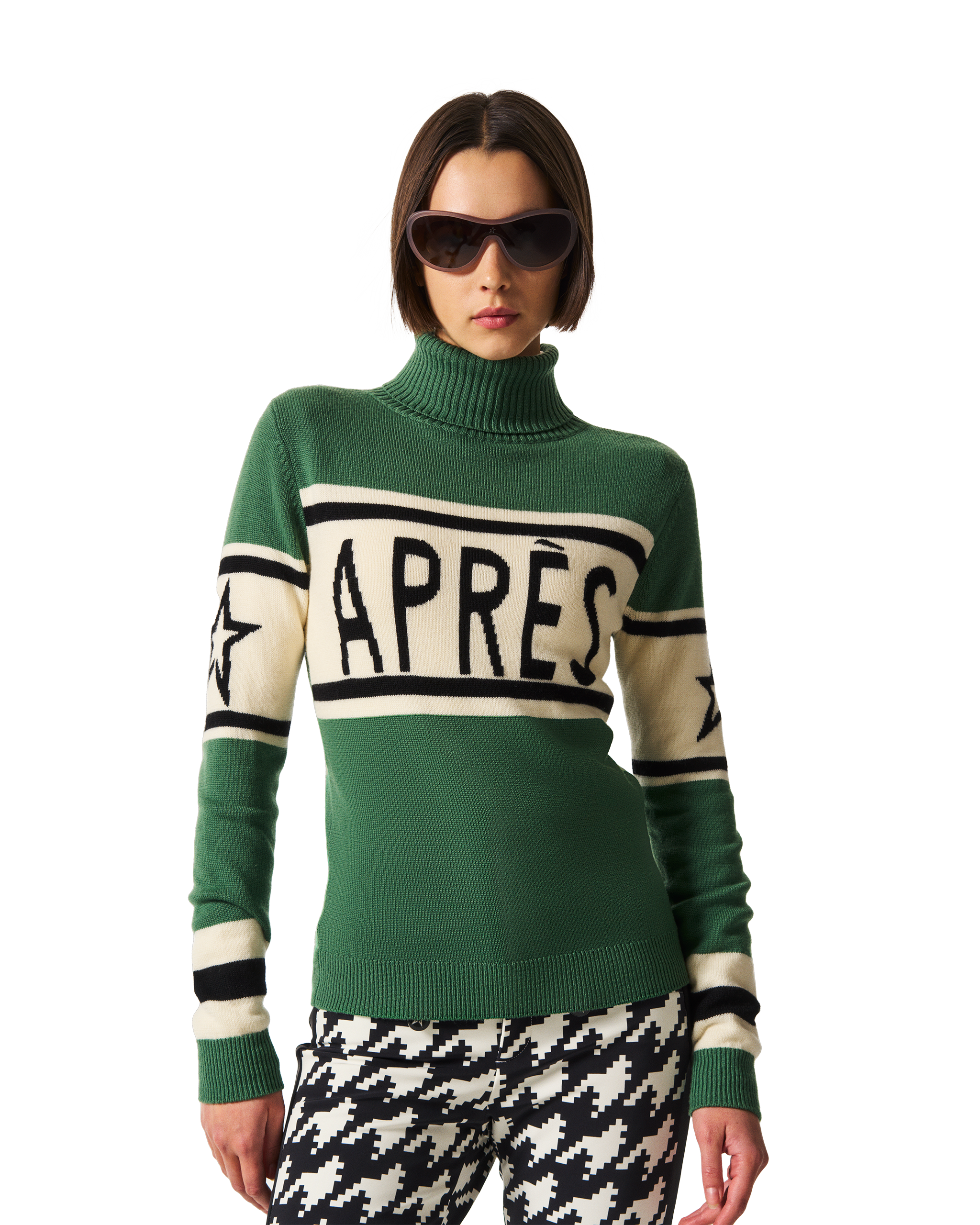 - Intarsienstrickmuster „Ski“ in der vorderen Mitte
