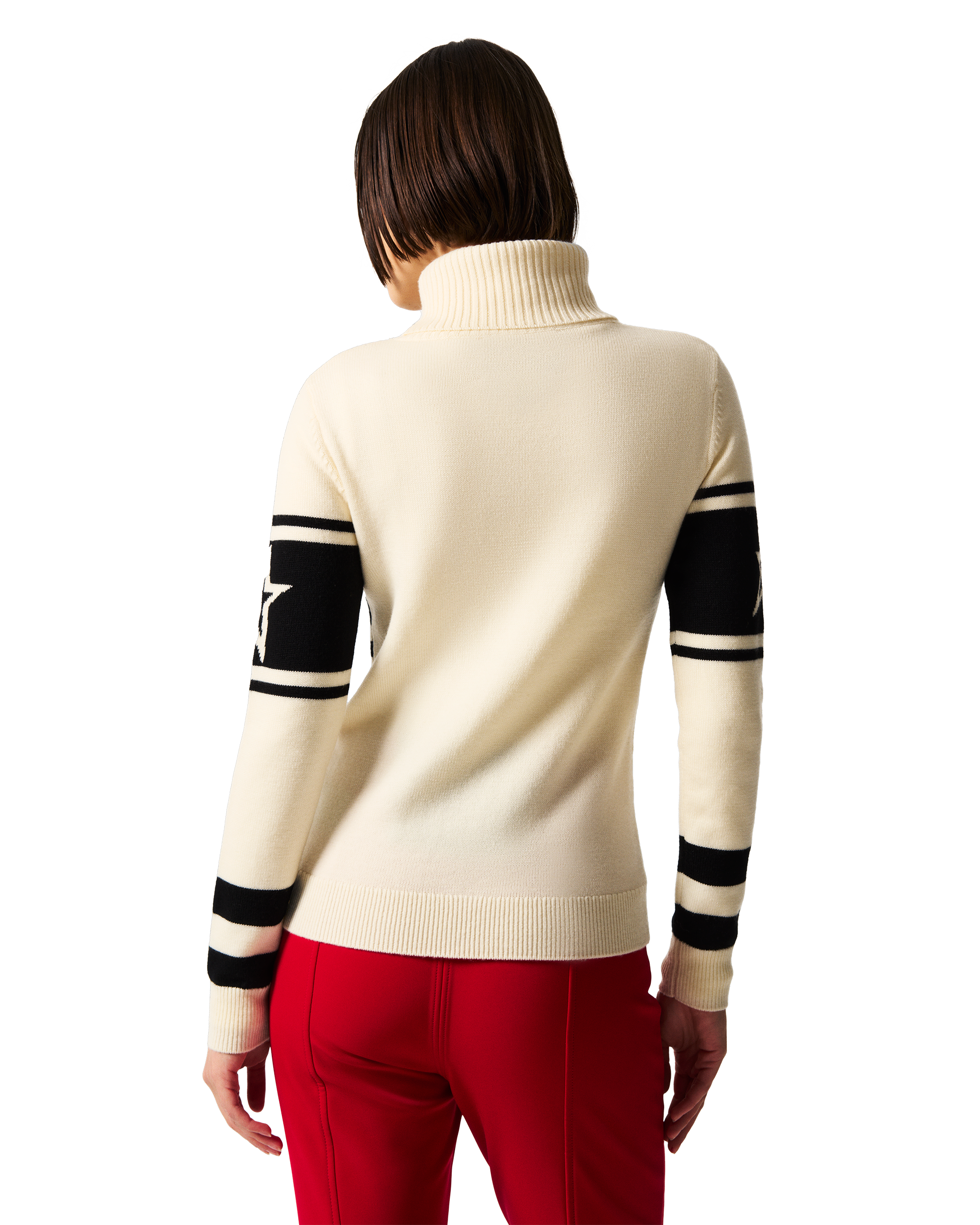 Der Schild Pullover, eine Ikone von Perfect Moment, ist unser meistverkaufter Strickpullover – gefertigt aus weicher, temperaturregulierender Merinowolle für zuverlässige Wärme auf und abseits der Piste. Mit seiner taillierten Silhouette und dem markanten „SKI“-Intarsienmuster auf der Brust verleiht er jedem Winter einen unverwechselbaren Stil und ist ein zeitloses Must-have. Atmungsaktiv und vielseitig, lässt er sich mühelos unter Oberbekleidung tragen oder solo beim Après-Ski. Kombinieren Sie ihn mit einer unserer Aurora-Skihosen für einen durchdachten Look an kalten Tagen.