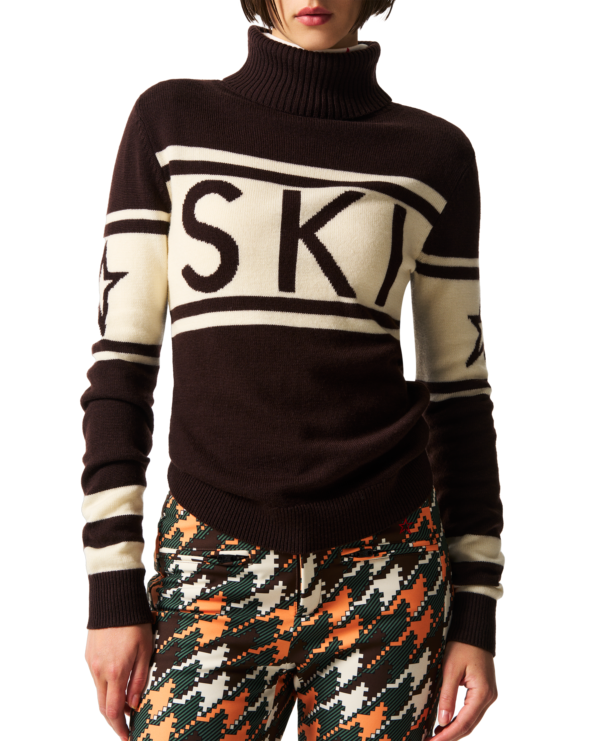 Der Schild Pullover, eine Ikone von Perfect Moment, ist unser meistverkaufter Strickpullover – gefertigt aus weicher, temperaturregulierender Merinowolle für zuverlässige Wärme auf und abseits der Piste. Mit seiner taillierten Silhouette und dem markanten „SKI“-Intarsienmuster auf der Brust verleiht er jedem Winter einen unverwechselbaren Stil und ist ein zeitloses Must-have. Atmungsaktiv und vielseitig, lässt er sich mühelos unter Oberbekleidung tragen oder solo beim Après-Ski. Kombinieren Sie ihn mit einer unserer Aurora-Skihosen für einen durchdachten Look an kalten Tagen.