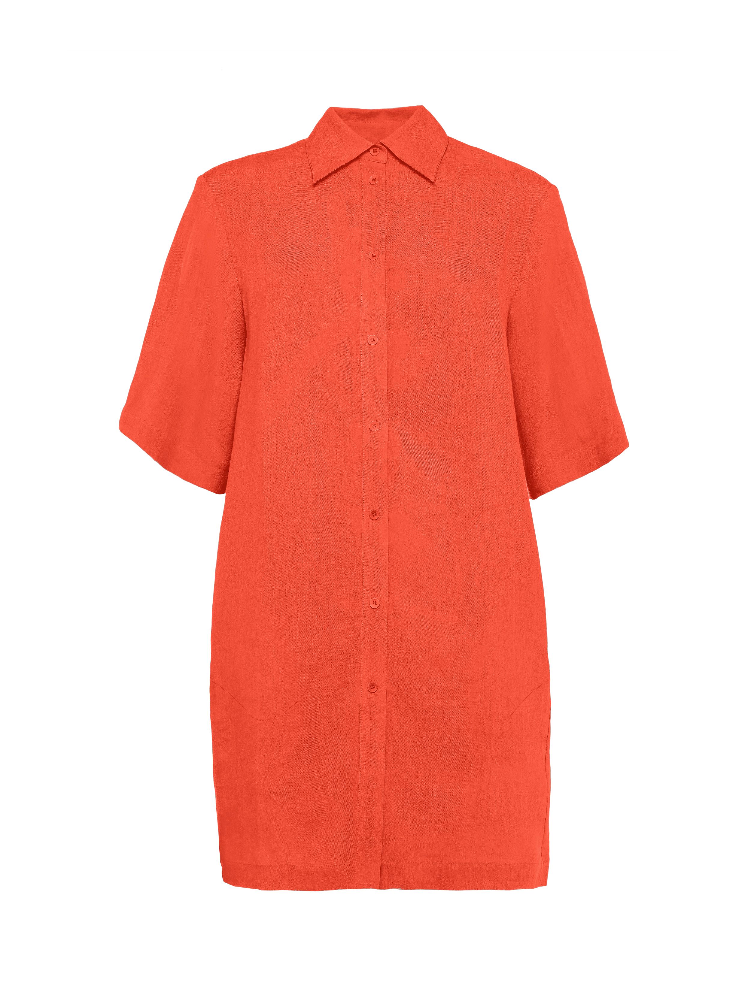 Séducteur ist ein Hemdkleid aus Leinen mit fliessender, femininer Silhouette. Sein natürlicher Fall betont die Figur und macht es zu einem Highlight der Saison, ideal von morgens bis abends.