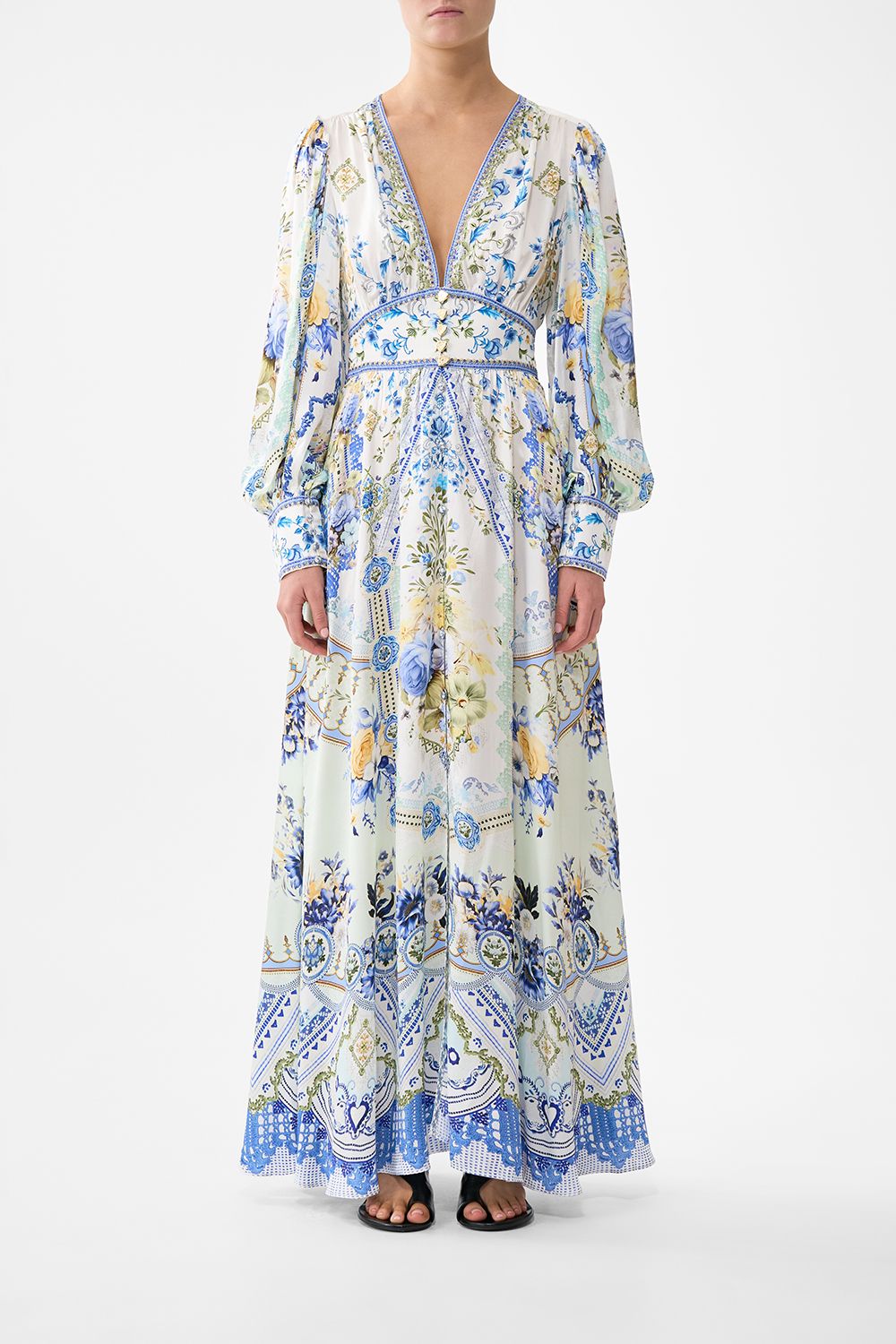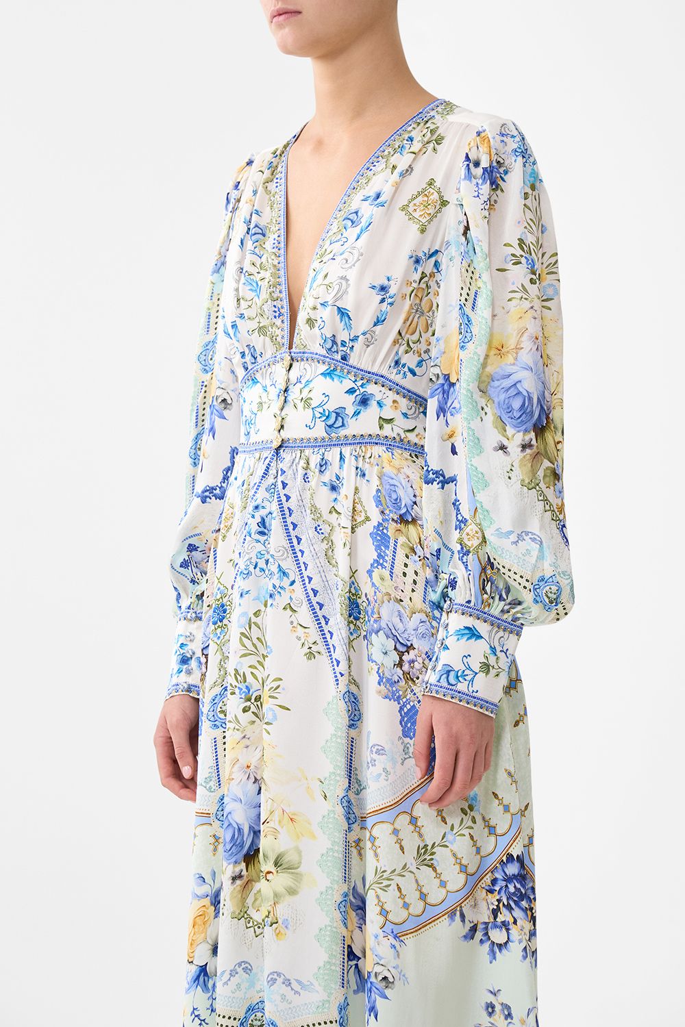 Das herzförmige Taillenkleid „My Homespun“ mit gerafften Ärmeln ist ein handgefertigtes Design unserer hauseigenen Kunsthandwerker. Neu interpretiert in einem exklusiven Print in limitierter Auflage, besticht unser tailliertes Kleid durch einen V-Ausschnitt mit Knopfleiste vorne und gerafftem Rücken für optimalen Tragekomfort. Die weichen, gerafften Ärmel umspielen die Figur und verleihen jedem Schritt fließende Eleganz. Zarte Rüschen und kunstvoll platzierte Kristallverzierungen runden das romantische Design ab.