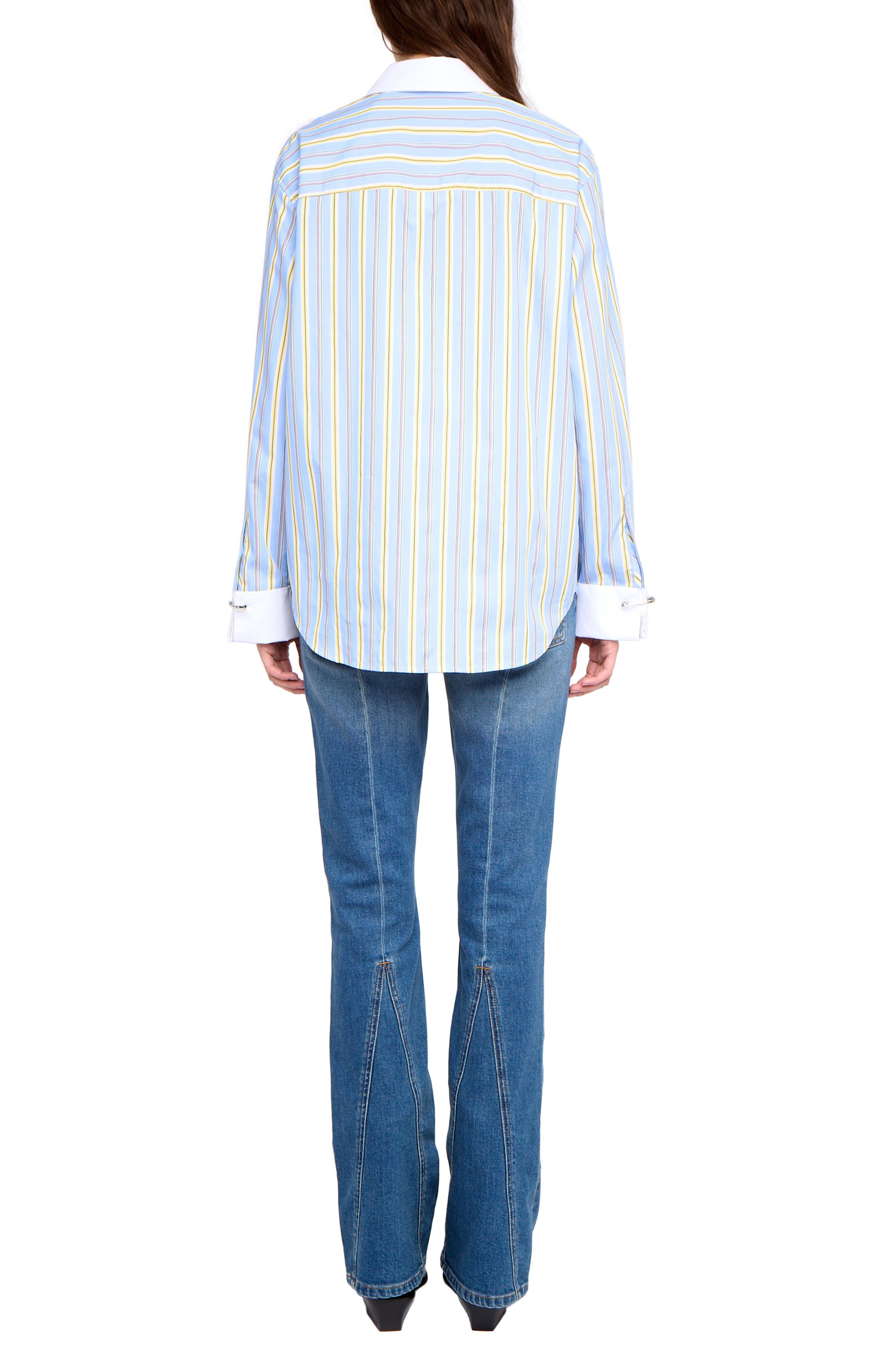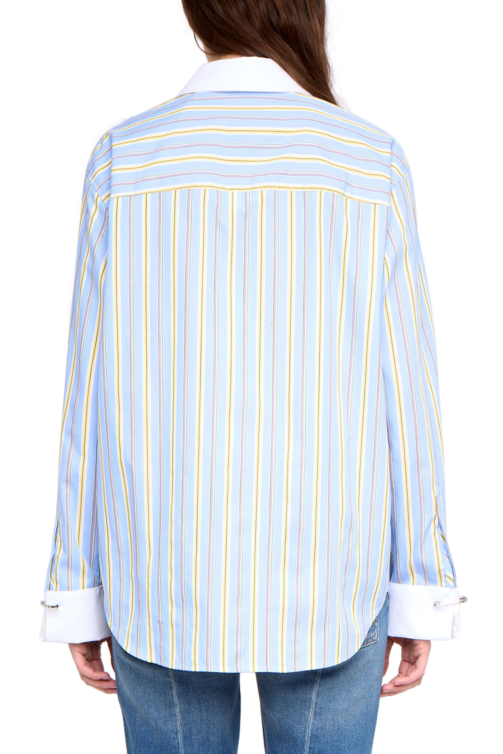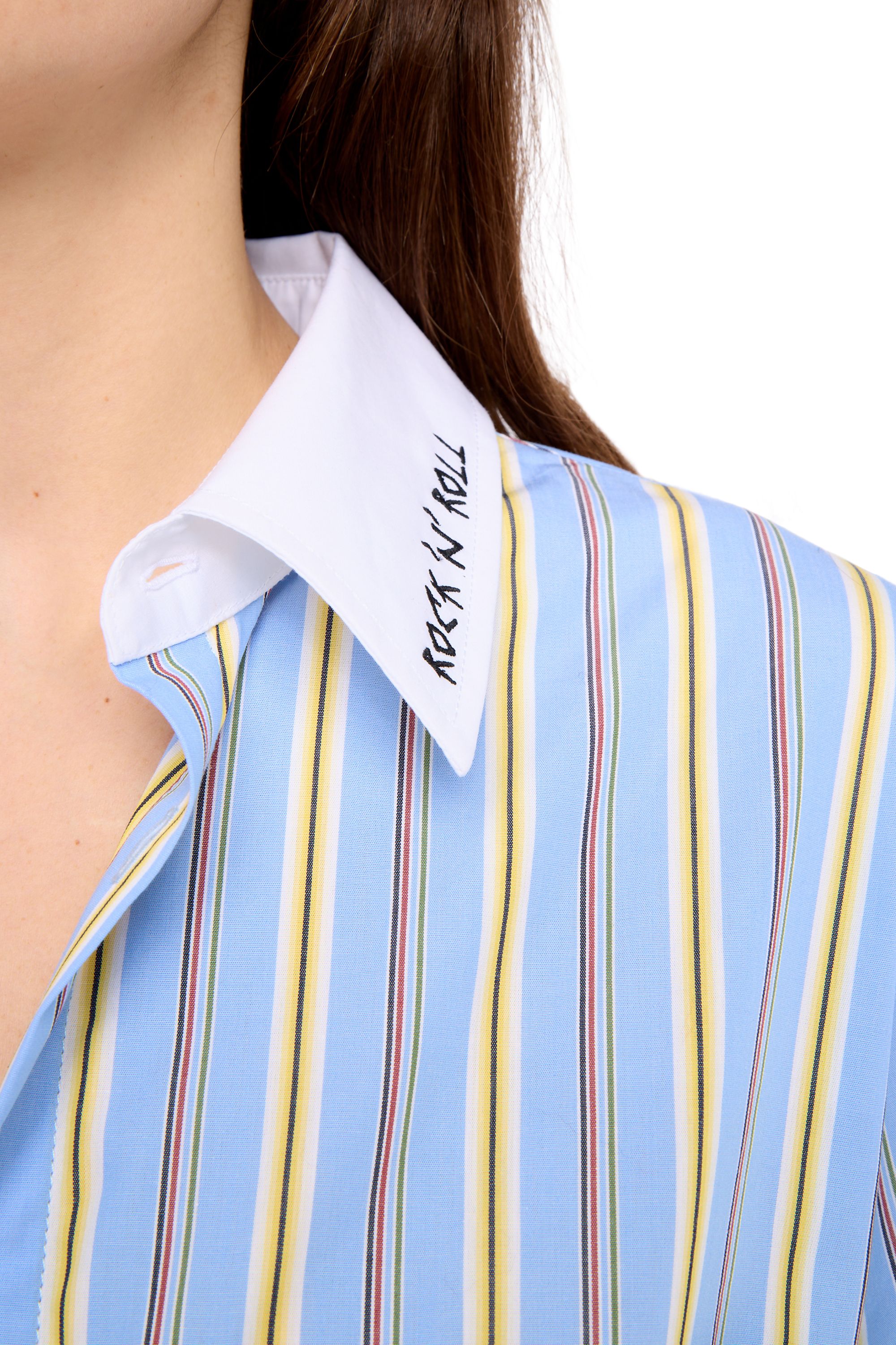 Oversized gestreifte Popeline-Bluse mit Stickerei sowie kontrastierendem Kragen und Manschetten.