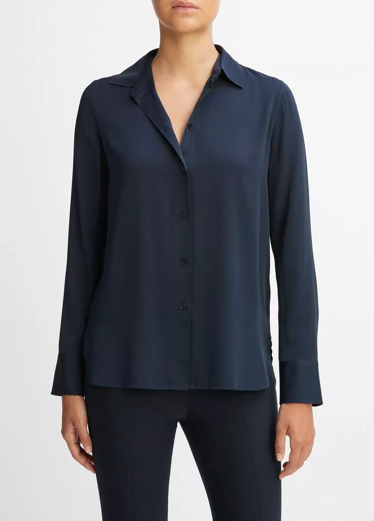 Ein Klassiker für das ganze Jahr: Diese figurbetonte Bluse ist aus dehnbarem Seiden-Crêpe de Chine geschnitten.