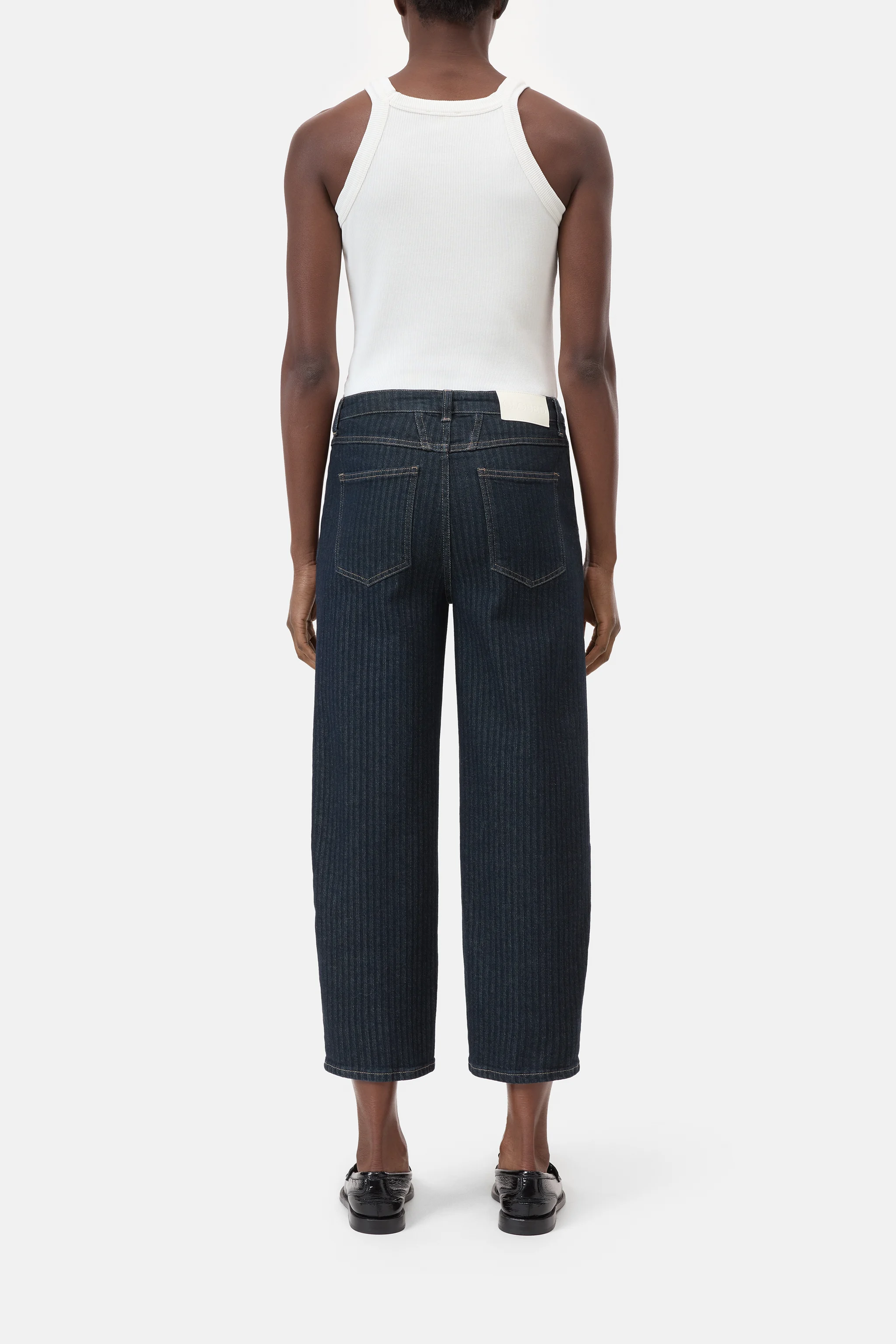- Relaxed Fit / Mid Waist / Cropped Leg