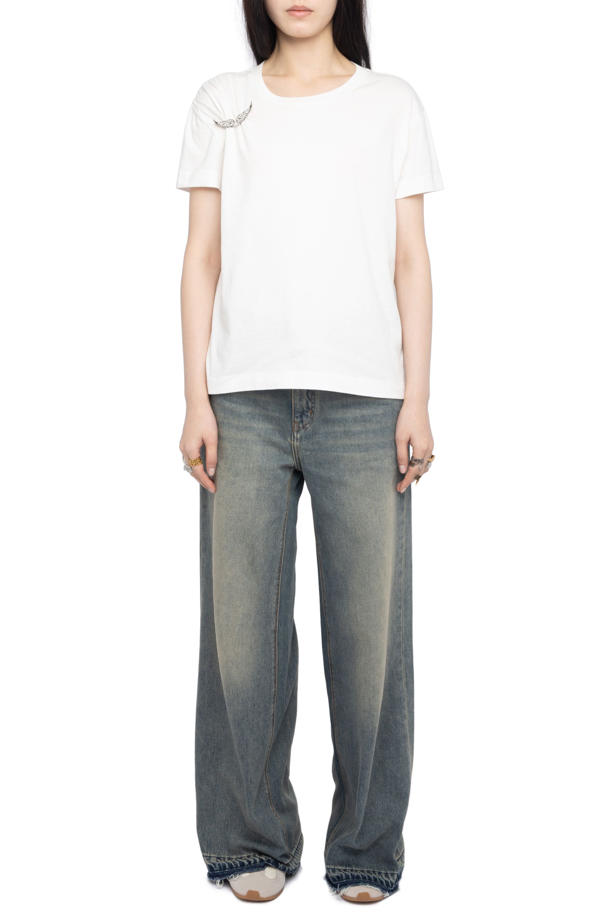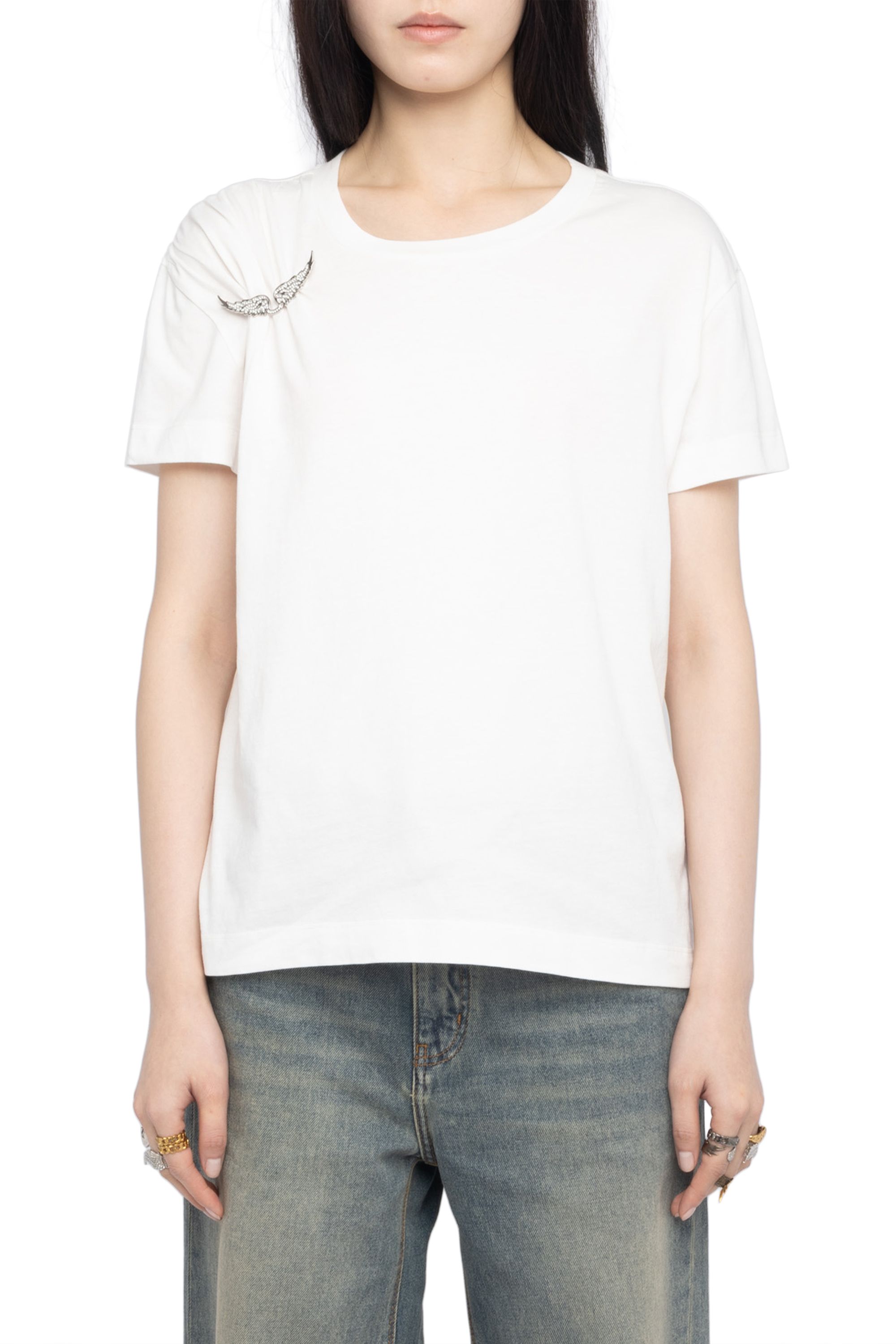 Kurzärmliges T-Shirt mit Flügel-Anstecknadel.