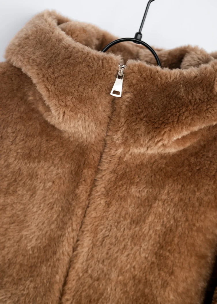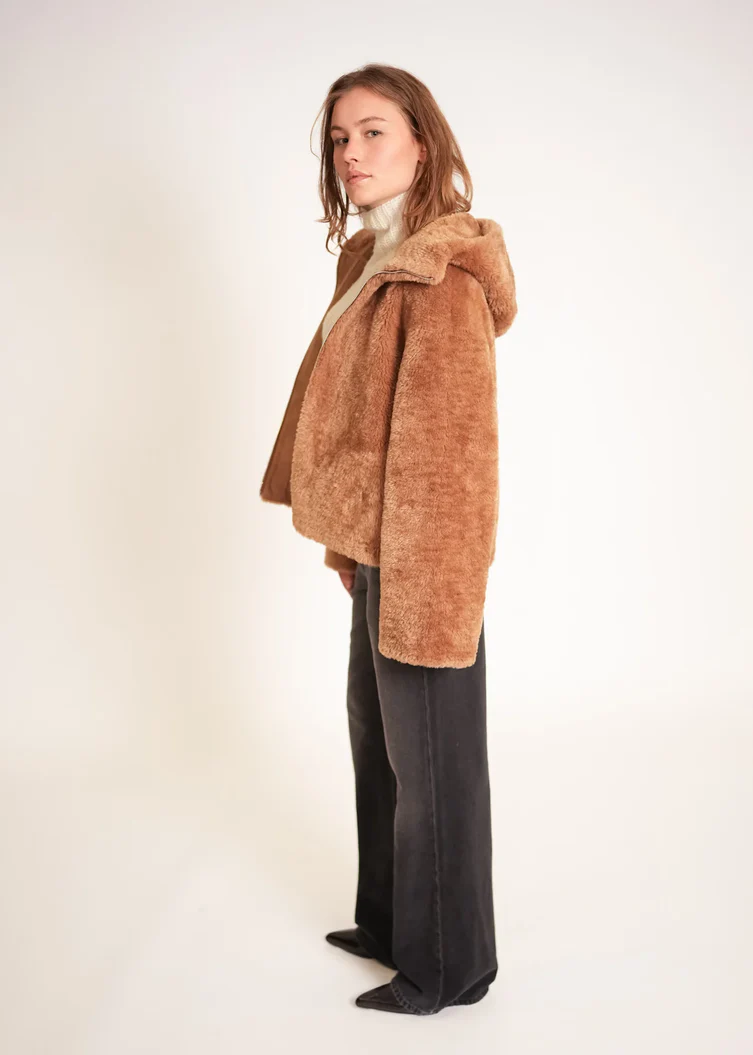 Ein Lieblingsstück für kalte Tage: Diese kurz geschnittene Teddyjacke mit Kapuze vereint Funktion und kuschelige Ästhetik. Das weiche, kurzflorige Teddy-Material sorgt für angenehme Wärme, während der cleane Schnitt für einen modernen Look steht – ideal für deine Winter-City-Looks.