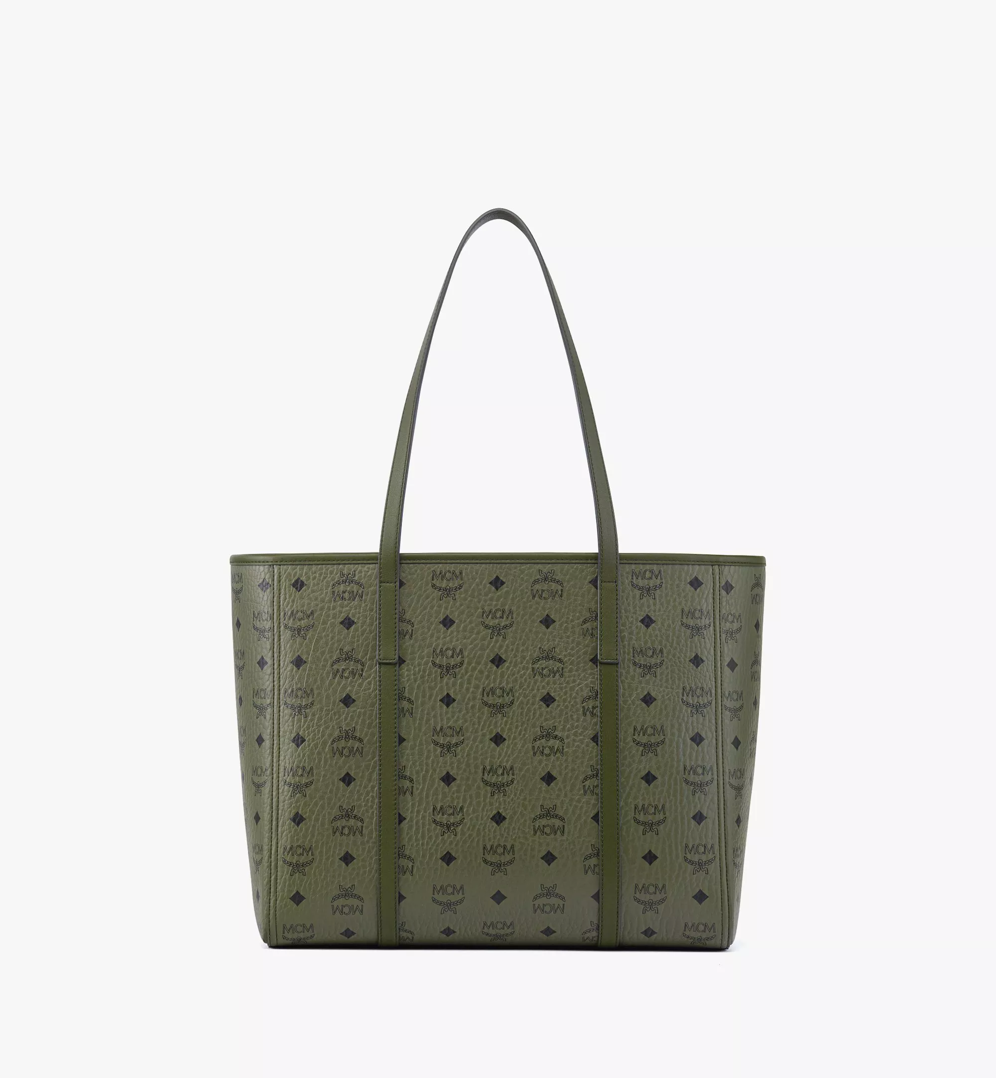 Ästhetisch verfeinert und praktisch durchdacht. Der mittelgrosse Toni Shopper in Khaki Moss ist mit den klassischen Buchstaben, Lorbeeren und Rauten des charakteristischen Visetos-Monogramms verziert. Die ikonische Logo-Messingplatte ist als das berühmte Markenzeichen von MCM bekannt und schmeichelt dieser eleganten Silhouette.