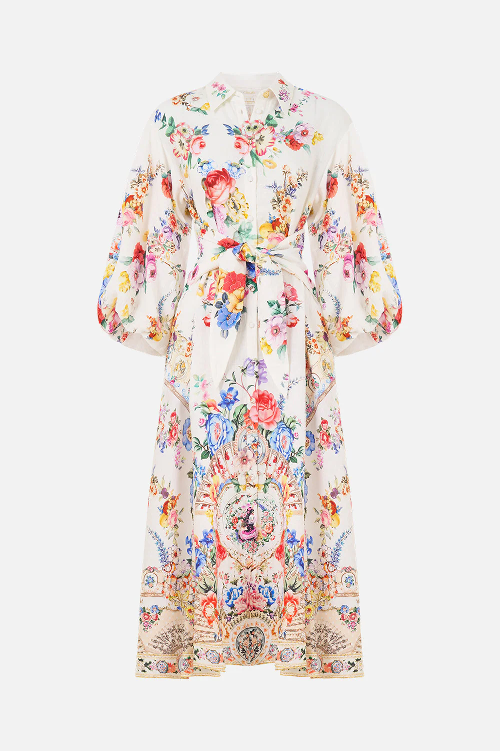 Das Hemdkleid „I Left My Heart In Granada“ mit Taillengürtel und Puffärmeln ist ein handgefertigtes Modell unserer hauseigenen Schneider. Das lässige Leinenkleid in exklusiver Limited Edition besticht durch eine Knopfleiste vorne, die in ein gerafftes Rückenteil übergeht und so vielseitige Tragemöglichkeiten bietet. Der strukturierte Kragen betont den Ausschnitt. Puffärmel und Taillengürtel unterstreichen die feminine Silhouette. Aufwendig platzierte Kristallverzierungen setzen funkelnde Akzente.