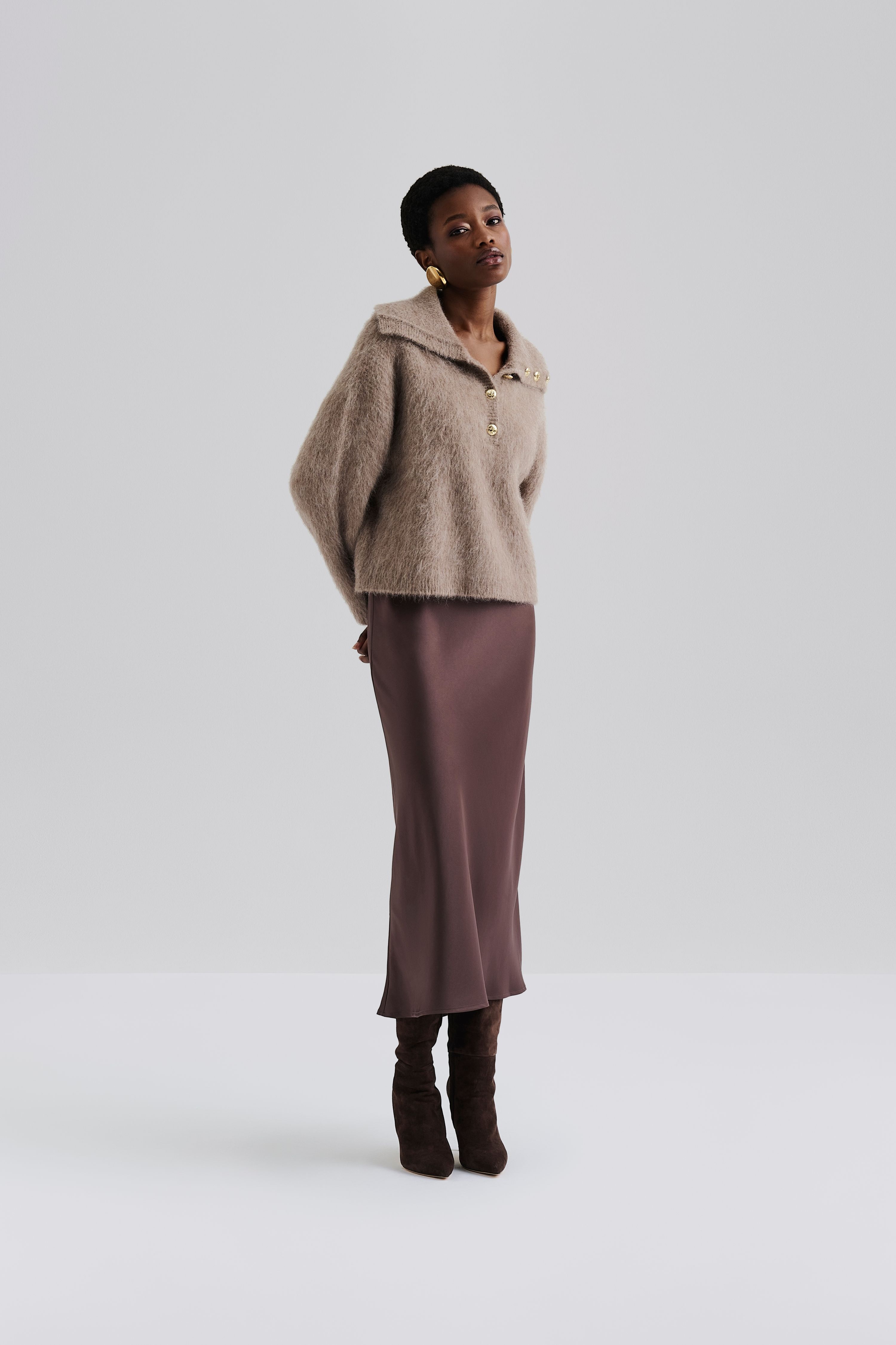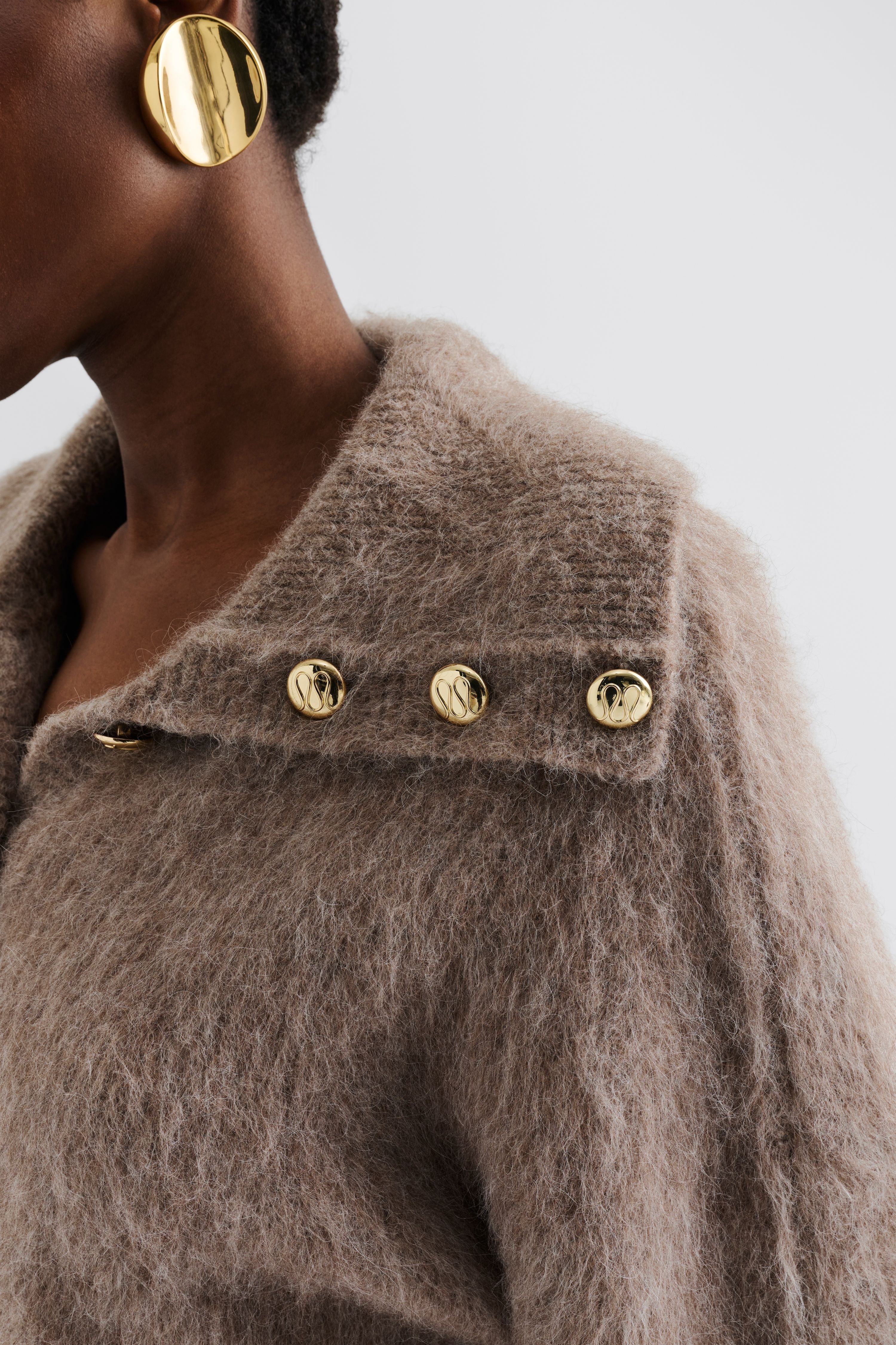 Pullover aus Alpakamischung mit umgeschlagenem Kragen und goldenen Knöpfen mit Malina-Monogramm.