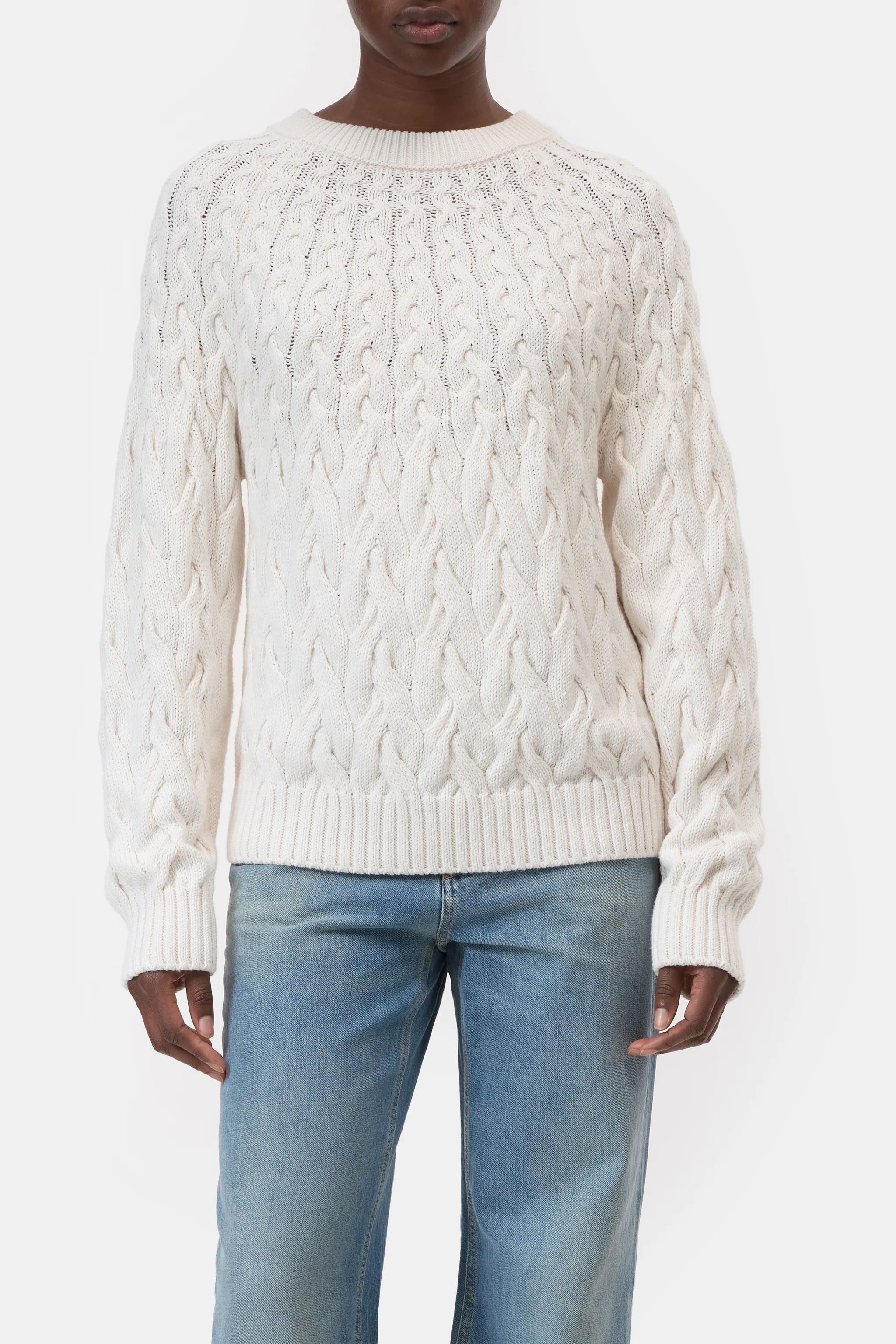 Dieser Rundhalspullover kommt mit aufwendigem Zopfmuster und Raglanärmeln. Er besteht aus reinem Bio-Baumwollgarn. Gerippte Bündchen am Ausschnitt, an den Ärmelabschlüssen sowie am geraden Saum runden das Design ab.
